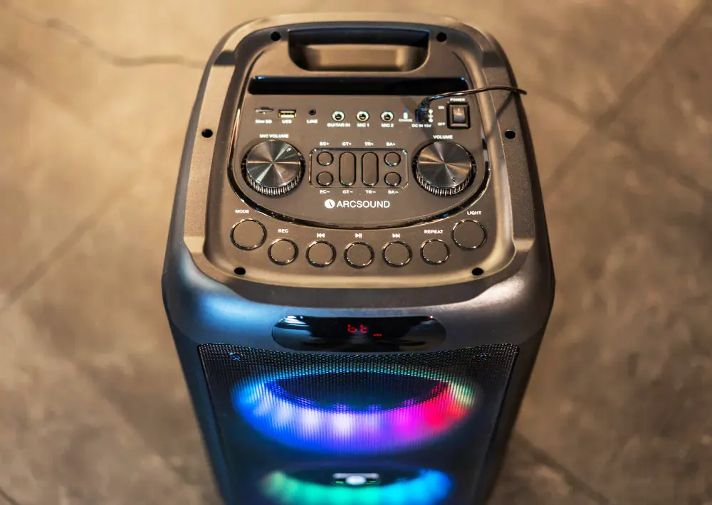Nie brakuje też efektów wizualnych – światła LED zsynchronizowane z muzyką podbijają klimat, a minimalistyczna konstrukcja głośnika sprawia, że prezentuje się stylowo w każdym otoczeniu. Sterowanie jest proste i wygodne, a dołączony pilot daje pełną kontrolę nad muzyką z dowolnego miejsca.