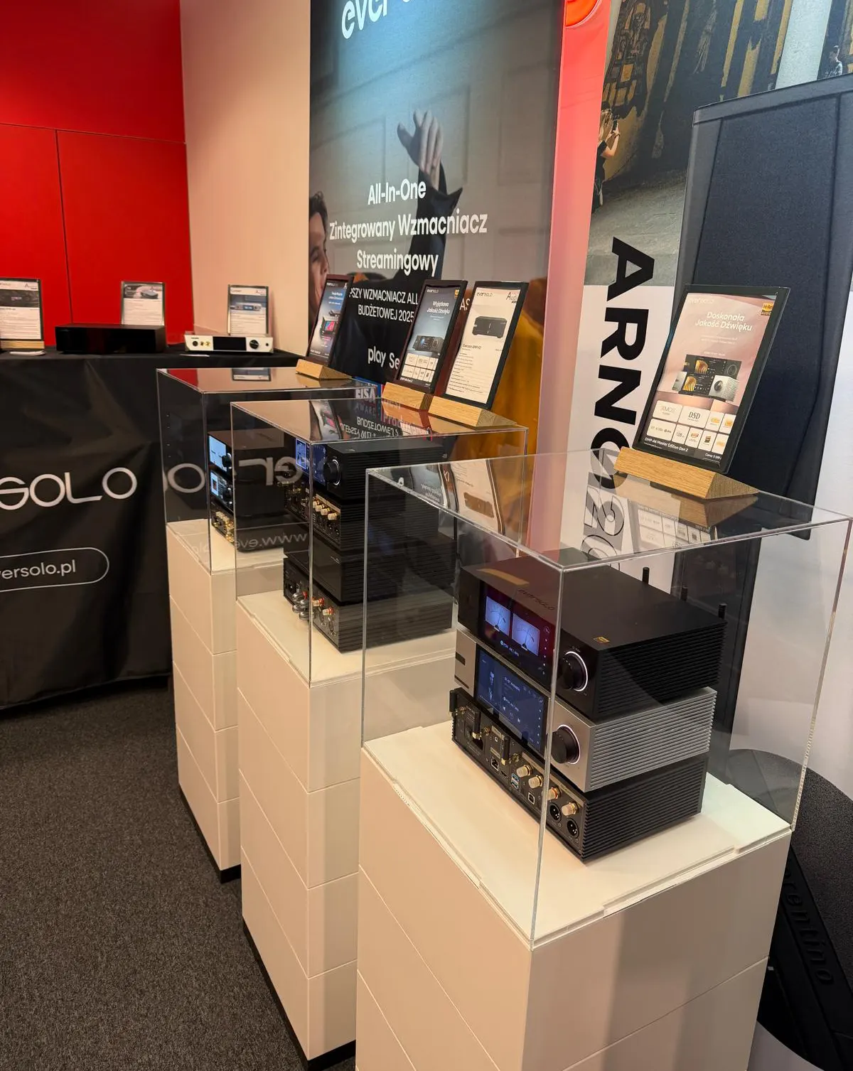 Urządzenia EverSolo były obecne także w systemach innych wystawców, co dodatkowo wzmocniło rozpoznawalność marki i potwierdziło jej pozycję wśród czołowych producentów sprzętu audio.