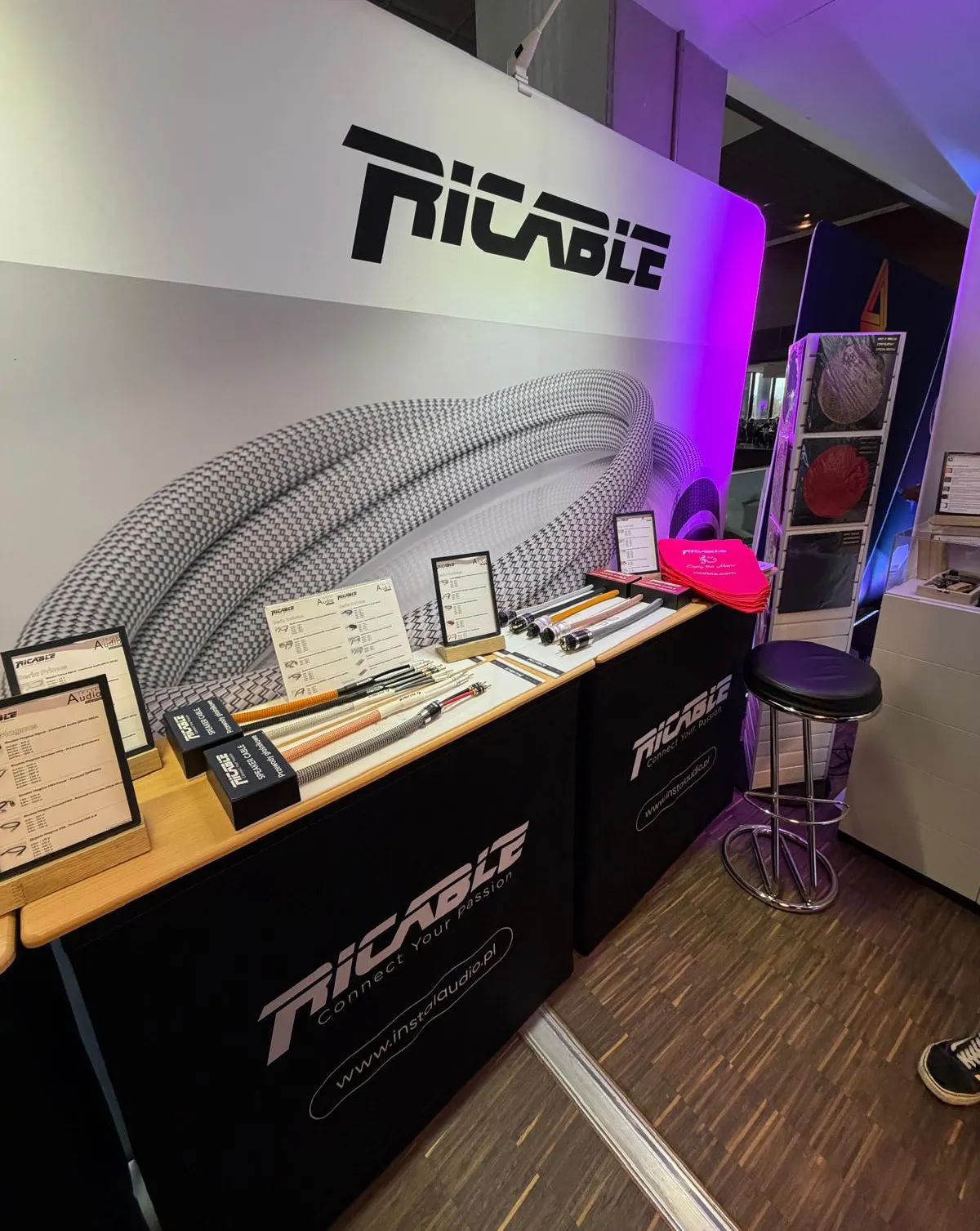 Odwiedzający wielokrotnie pytali właśnie o użyte przewody, doceniając klarowność, balans i muzykalność dźwięku. Zainteresowanie produktami Ricable było ogromne – wielu gości robiło zdjęcia, pytało o dostępne serie i podkreślało wyjątkowy włoski design oraz dbałość o detale.