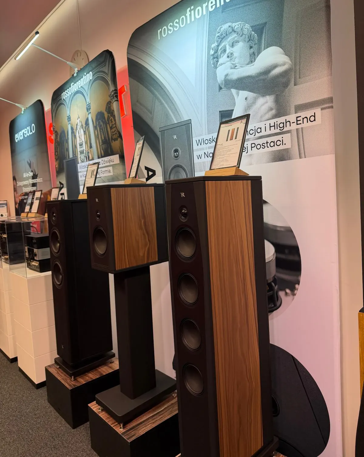 System oparty na Rosso Fiorentino Siena 2 w połączeniu z elektroniką EverSolo zachwycił naturalnym, pełnym emocji brzmieniem. Wielu odwiedzających pytało właśnie o ten model, podkreślając jego spójność tonalną, głębię sceny i wyrafinowaną estetykę.