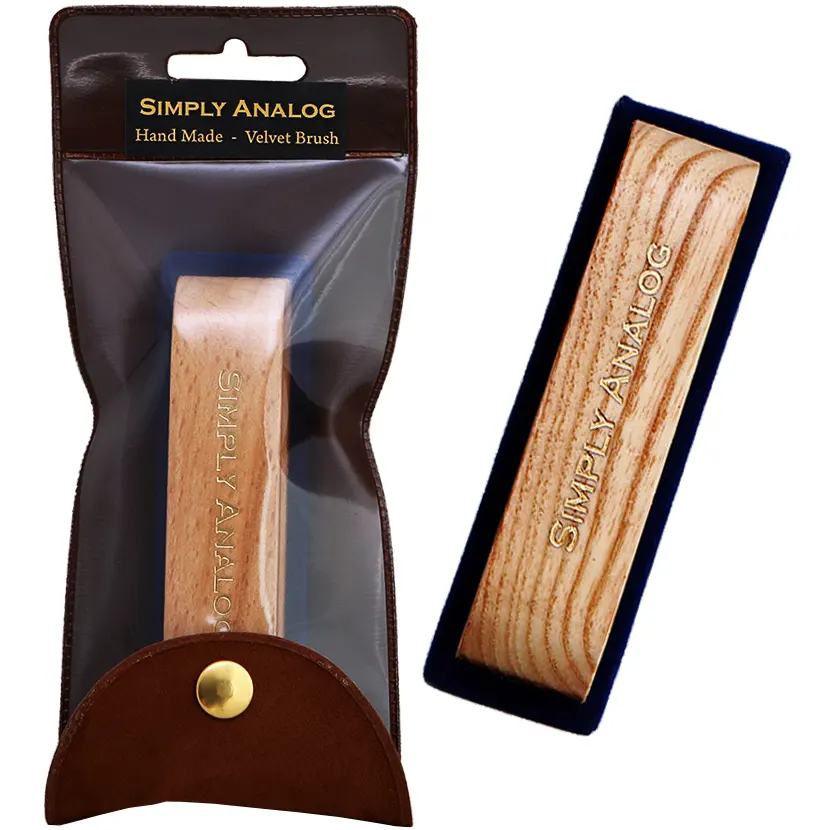 Vinyl Record Brush to szczotka wykonana ręcznie z naturalnego drewna (dwa warianty: Naturalne Drewno / Czarne Drewno) i gęstego koziego włosia. Zapewnia delikatne, skuteczne czyszczenie płyt winylowych oraz redukcję ładunków elektrostatycznych, co przekłada się na mniej trzasków i bardziej stabilny odsłuch. Dłuższe włókna stosowane przez Simply Analog są wyjątkowo efektywne w usuwaniu kurzu i zabrudzeń z powierzchni płyt.
