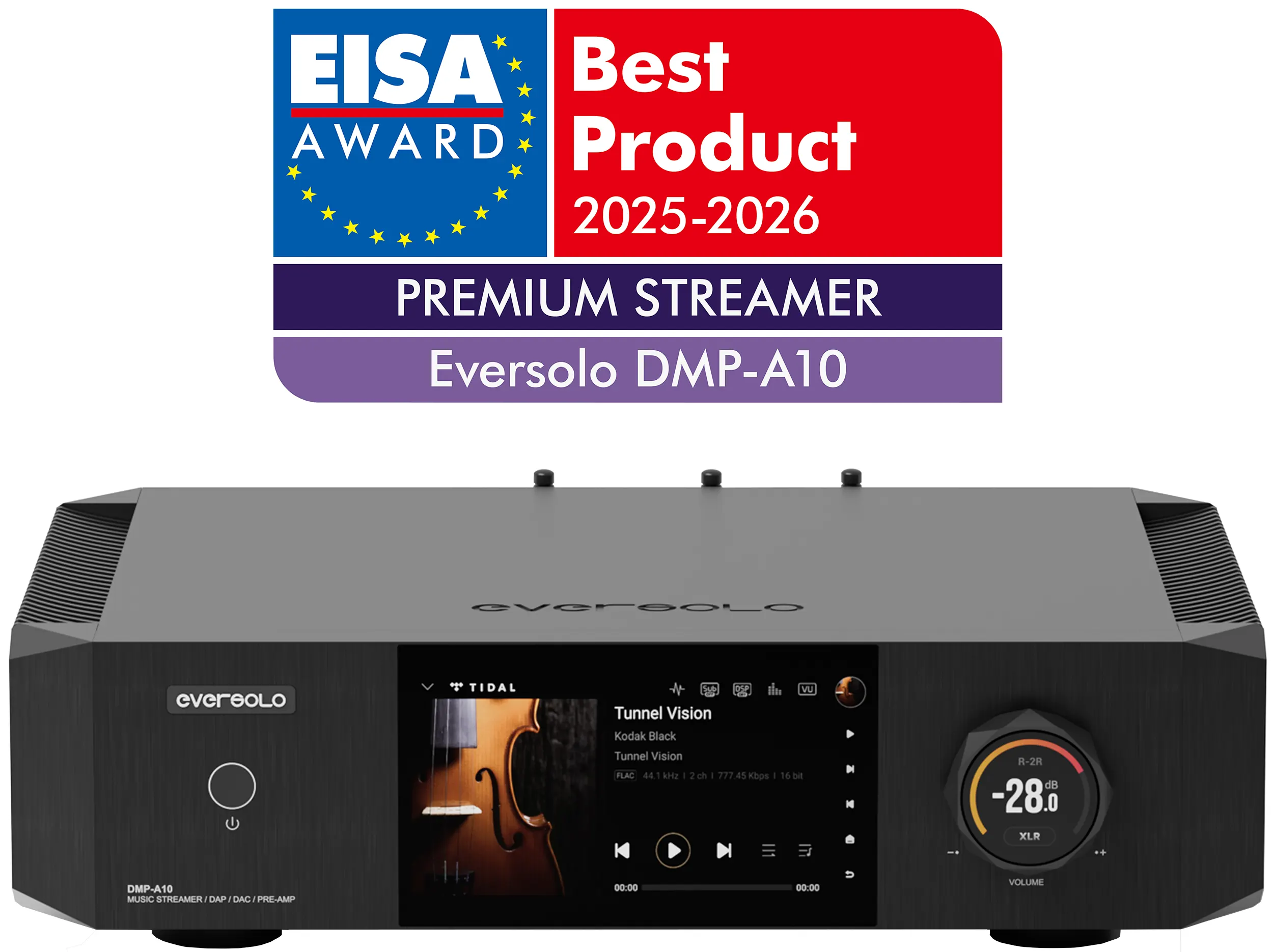 Stowarzyszenie Expert Imaging and Sound Association (EISA) ogłosiło laureatów prestiżowych nagród 2025-2026. Wśród zwycięzców znalazły się dwa urządzenia marki EverSolo. Flagowy model EverSolo DMP-A10 zdobył nagrodę „EISA PREMIUM STREAMER 2025-2026”, zostając uznanym za najlepszy odtwarzacz sieciowy klasy premium na rynku. Natomiast najnowszy i niezwykle popularny EverSolo Play otrzymał nagrodę „EISA BEST VALUE STREAMING AMPLIFIER 2025-2026”, jako najlepszy wzmacniacz All-in-One w segmencie budżetowym na rynku.