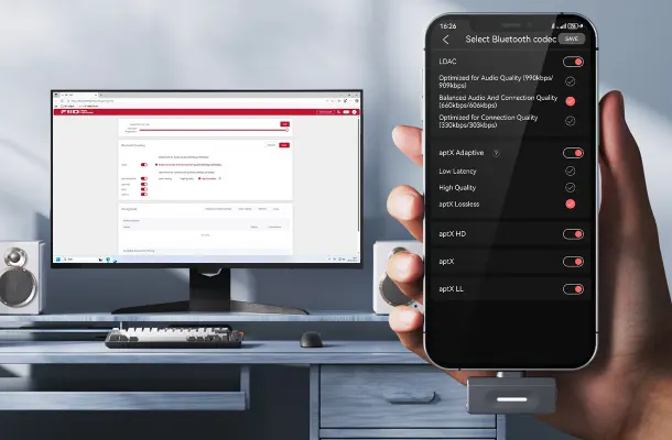 Zarządzaj urządzeniem wygodnie za pomocą aplikacji FIIO Control* lub interfejsu webowego. Zmieniaj kodeki Bluetooth, aktualizuj oprogramowanie i obsługuj wiele połączeń – wszystko szybko i intuicyjnie.
