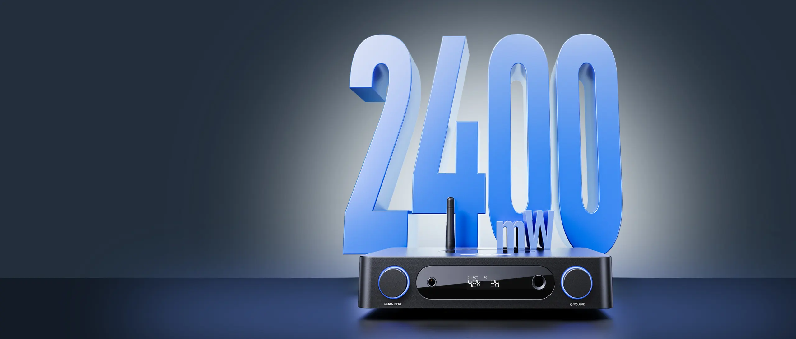 Zbalansowane wyjście 2400mW + 2400mW przy obciążeniu 32Ω