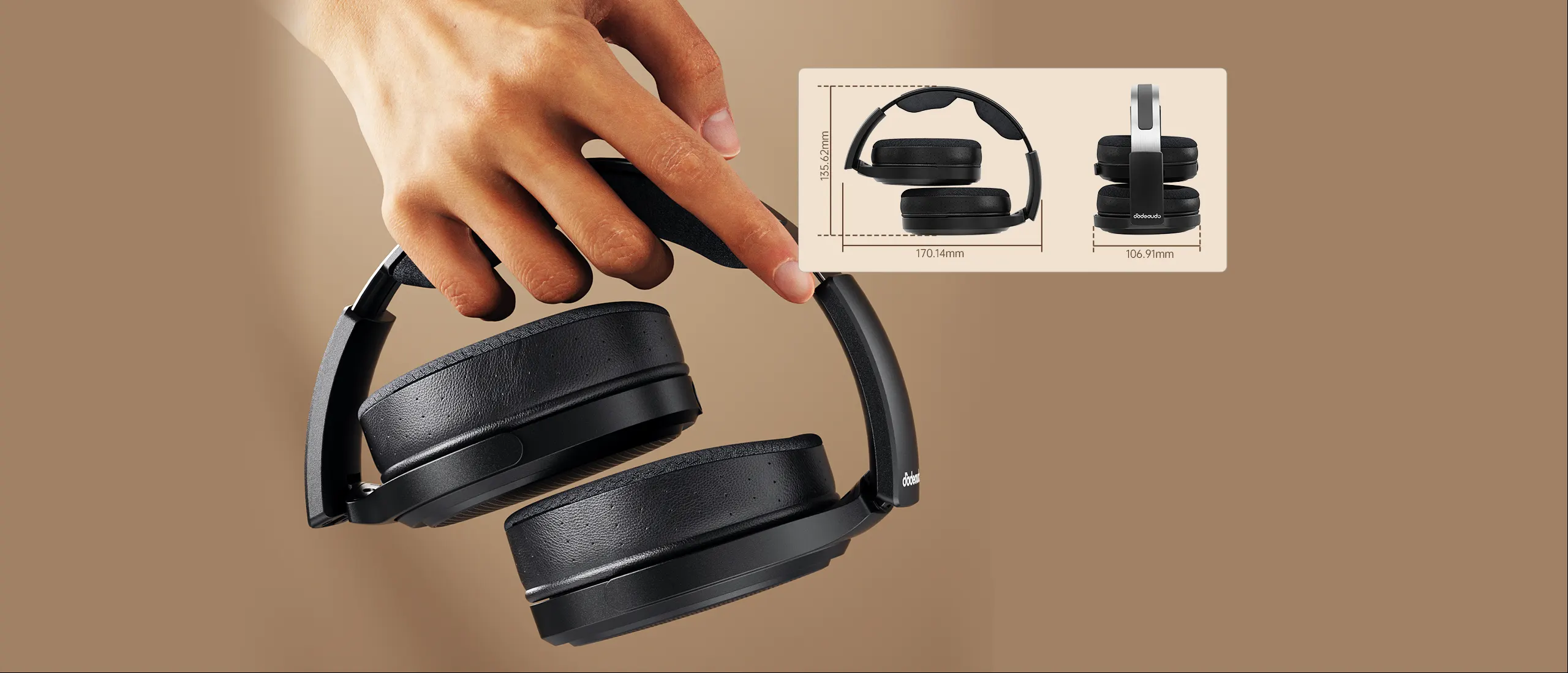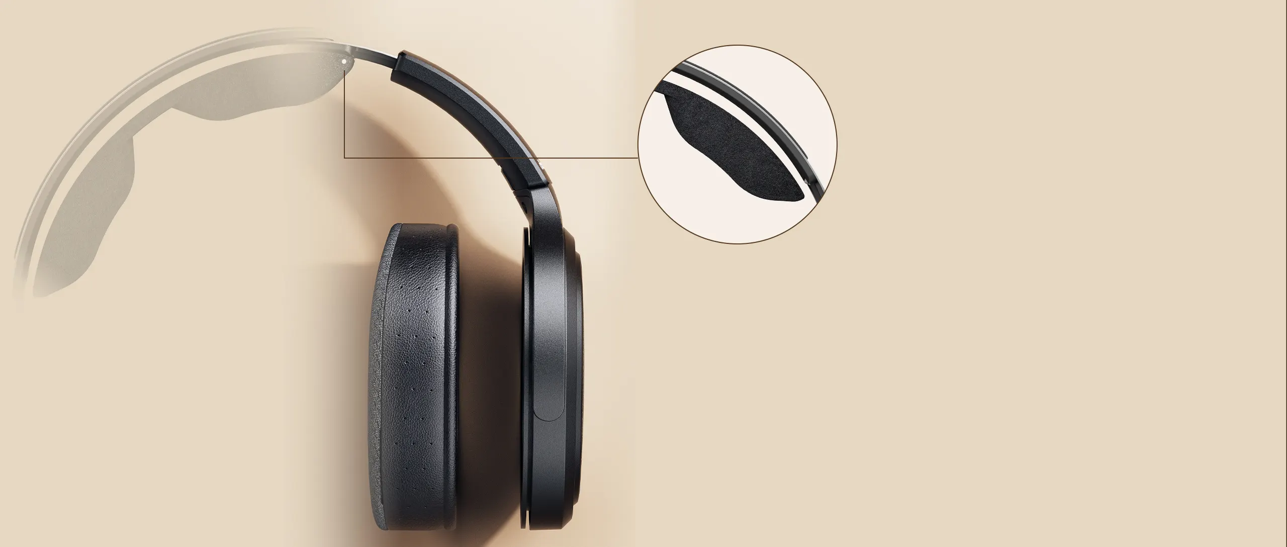 Wielopłaszczyznowy pałąk ergonomiczny zapewnia elastyczność nauszników i przegubów, gwarantując idealne dopasowanie do kształtu głowy i uszu. Dzięki temu dźwięk jest precyzyjnie dostarczany, a komfort użytkowania maksymalny.