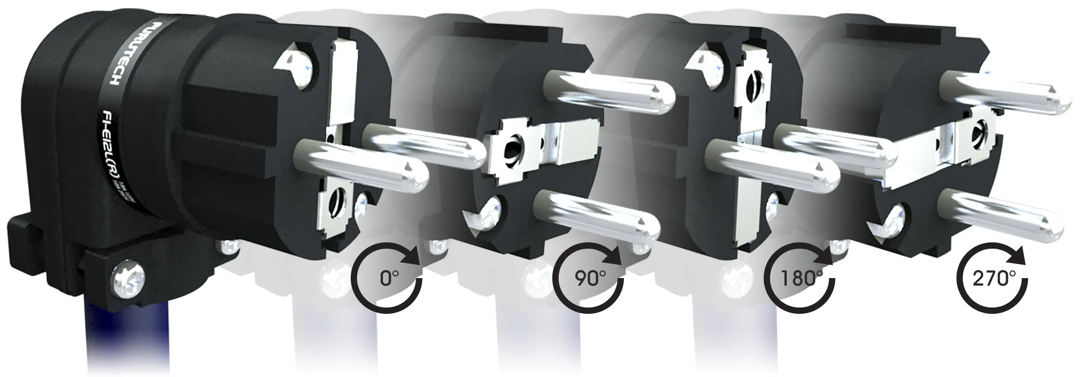 Pierwsze na świecie wysokiej klasy złącza zasilające o konstrukcji kątowej, opracowane przez Furutech. Każda wersja posiada regulowany kąt ustawienia oraz przewodniki z czystej miedzi α (Alpha), dopasowane do charakteru brzmienia i wykończenia powierzchni.