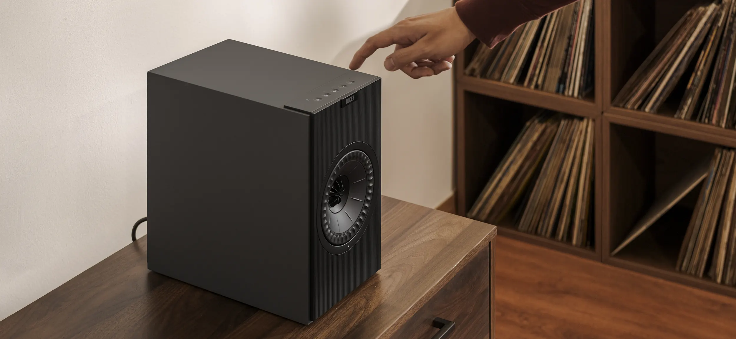 Wyjście na subwoofer - Poczuj głębię basu. Dedykowane wyjście pozwala łatwo podłączyć zewnętrzny subwoofer KEF, uzyskując jeszcze potężniejsze i bardziej dynamiczne niskie tony.