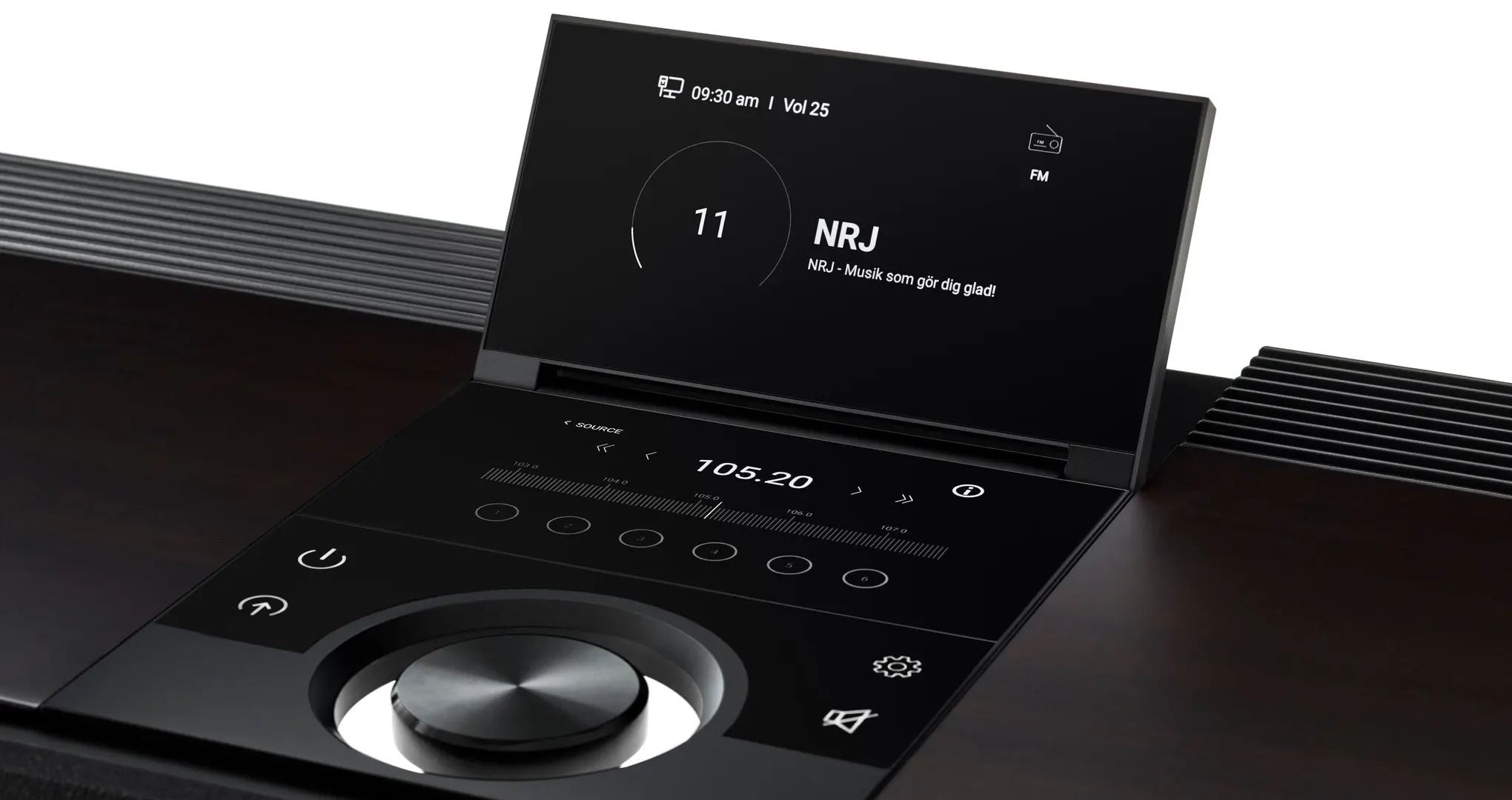 Stały ekran dotykowy, zmotoryzowany wyświetlacz i duże pokrętło głośności sprawiają, że dostęp i monitorowanie wszystkich opcji rozrywki są niezwykle proste – bezpośrednio z poziomu urządzenia Allt-i-Ett.