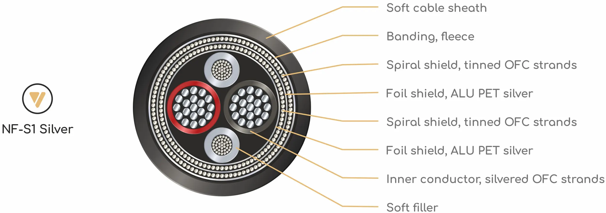 Ostatecznym celem każdego kabla hi-fi klasy high-end jest przekazanie muzyki dokładnie tak, jak została nagrana. Nawet najsubtelniejsze barwy dźwiękowe muszą być odwzorowane w oryginalnej formie. VIABLUE NF-S1 transmituje wszystkie częstotliwości całkowicie wiernie i precyzyjnie. Dzięki połączeniu różnych materiałów NF-S1 wyróżnia się przejrzystym obrazem dźwiękowym, czystym basem oraz bardzo szczegółowym odwzorowaniem wysokich tonów.